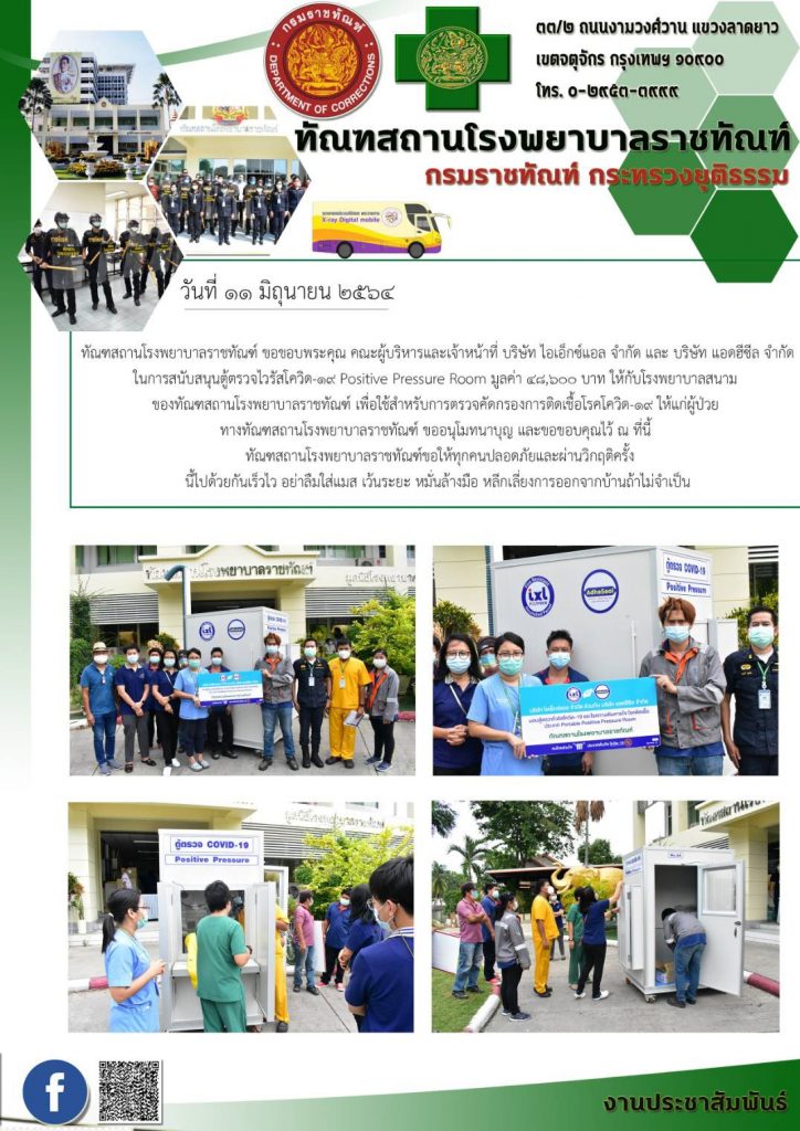 บริษัท ไอเอ็กซ์แอล จำกัด ส่งมอบตู้ตรวจ Covid-19 ปี 2 ณ ทัณฑสถานโรงพยาบาลราชทัณฑ์ กรุงเทพฯ