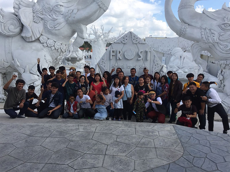 Company outing – This year, we travelled to Rayong going to the beach and visited orchards to taste Thai fruits such as durian, rambutan, mangosteen, etc.