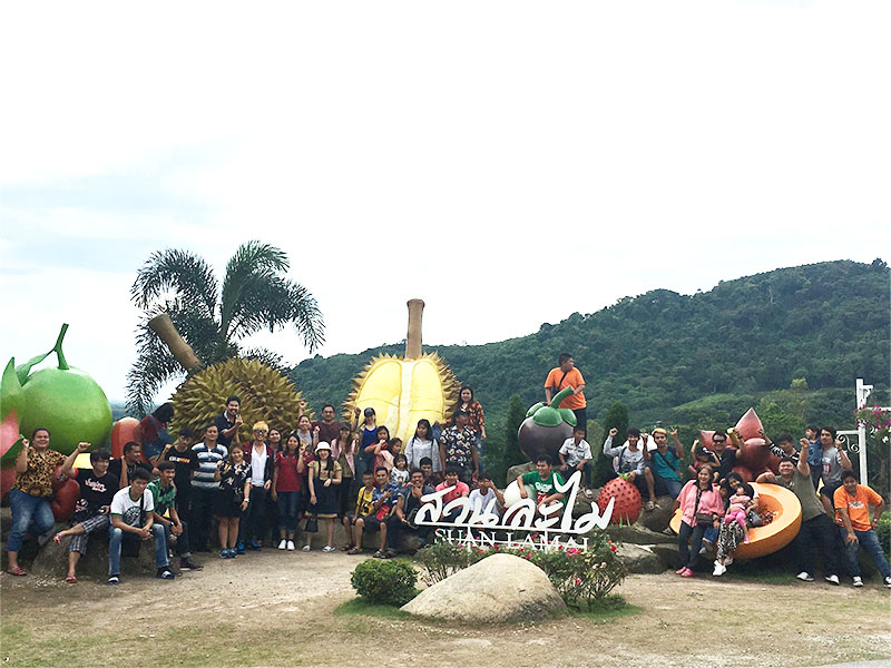 Company outing – This year, we travelled to Rayong going to the beach and visited orchards to taste Thai fruits such as durian, rambutan, mangosteen, etc.